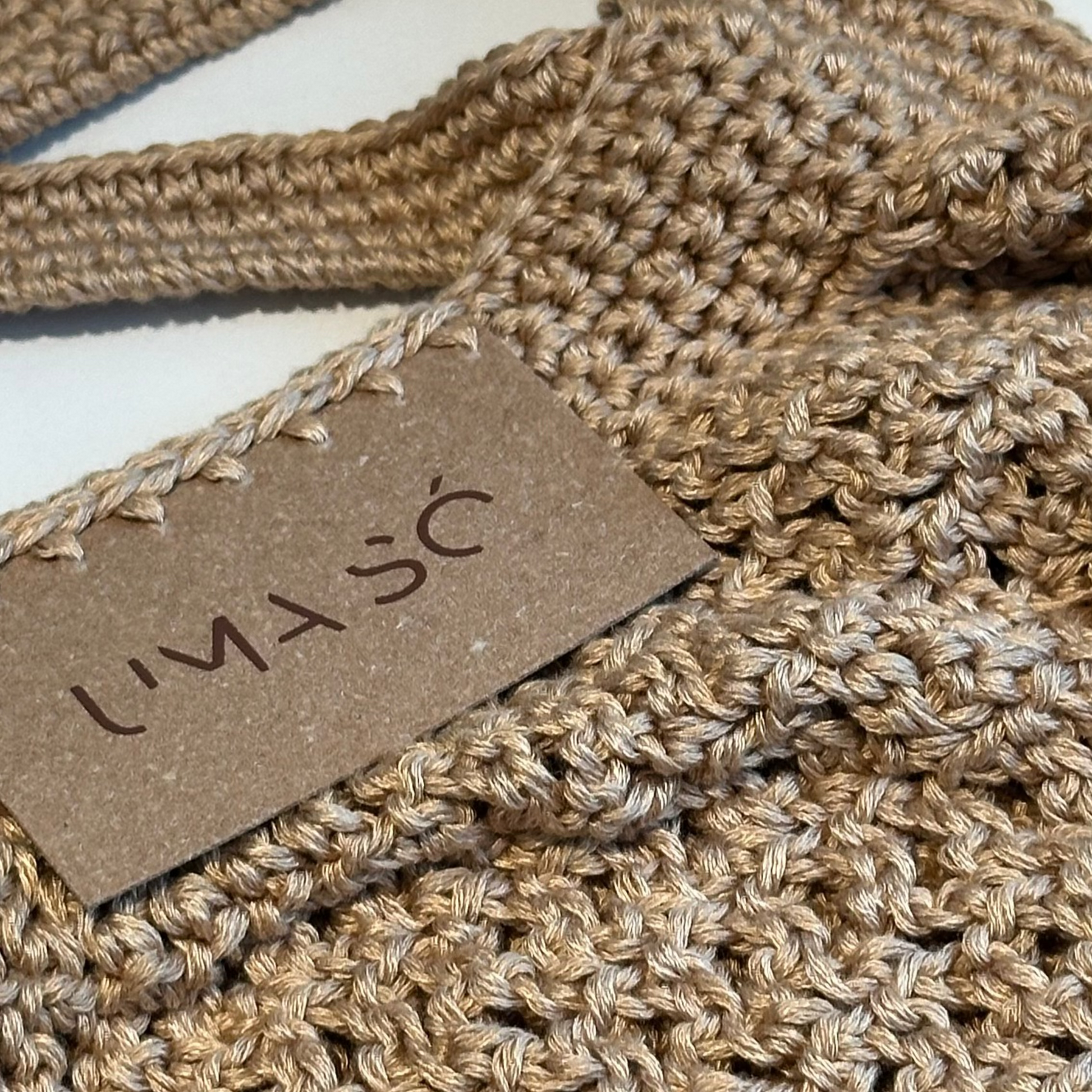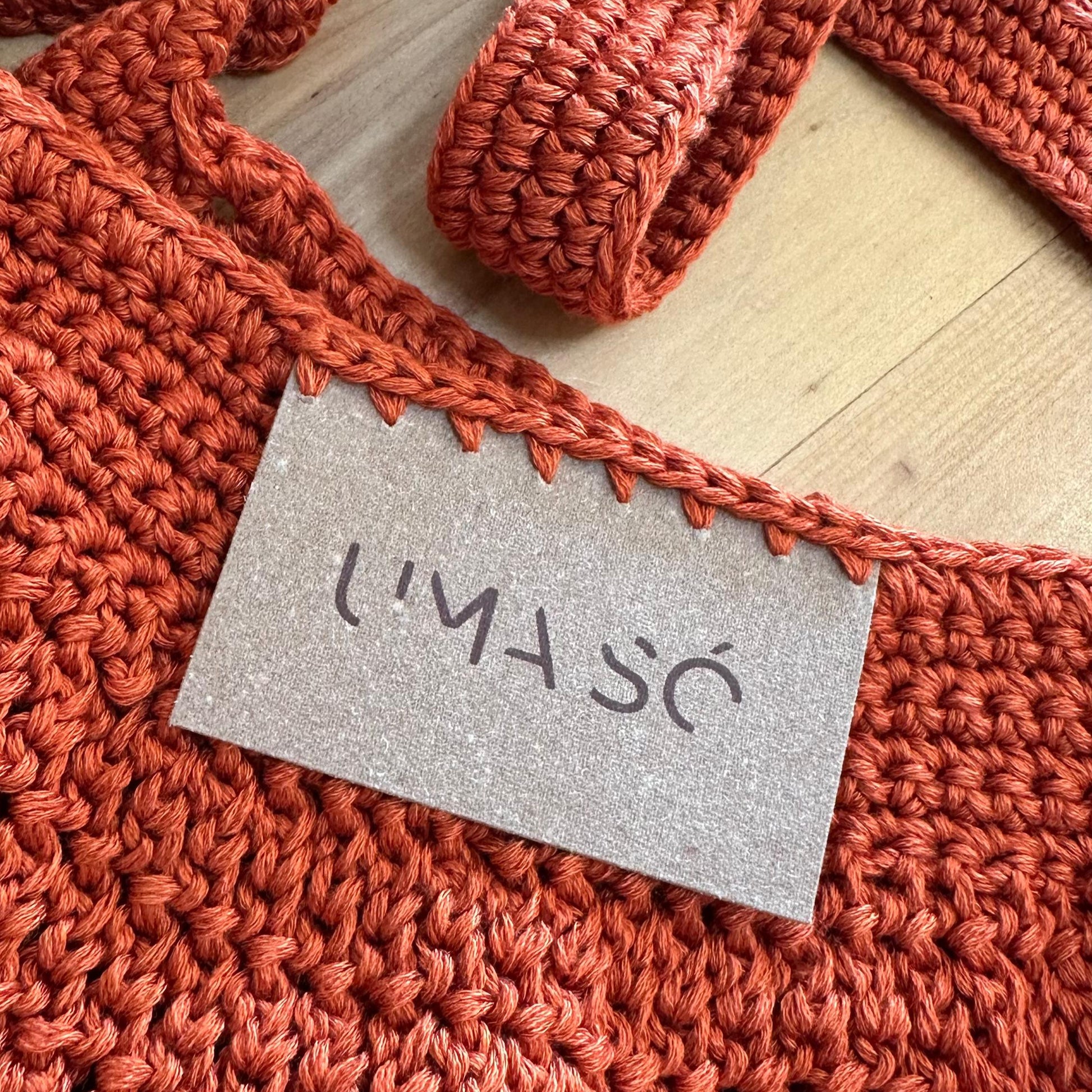 A Bolsa Rede Uma Só feita à mão em crochê pela artesã Giselly Mafra, com fios de viscose vegetal de cana-de-açúcar. Leve, macia e única, traz etiqueta de recouro com a logo e acompanha saquinho de algodão.