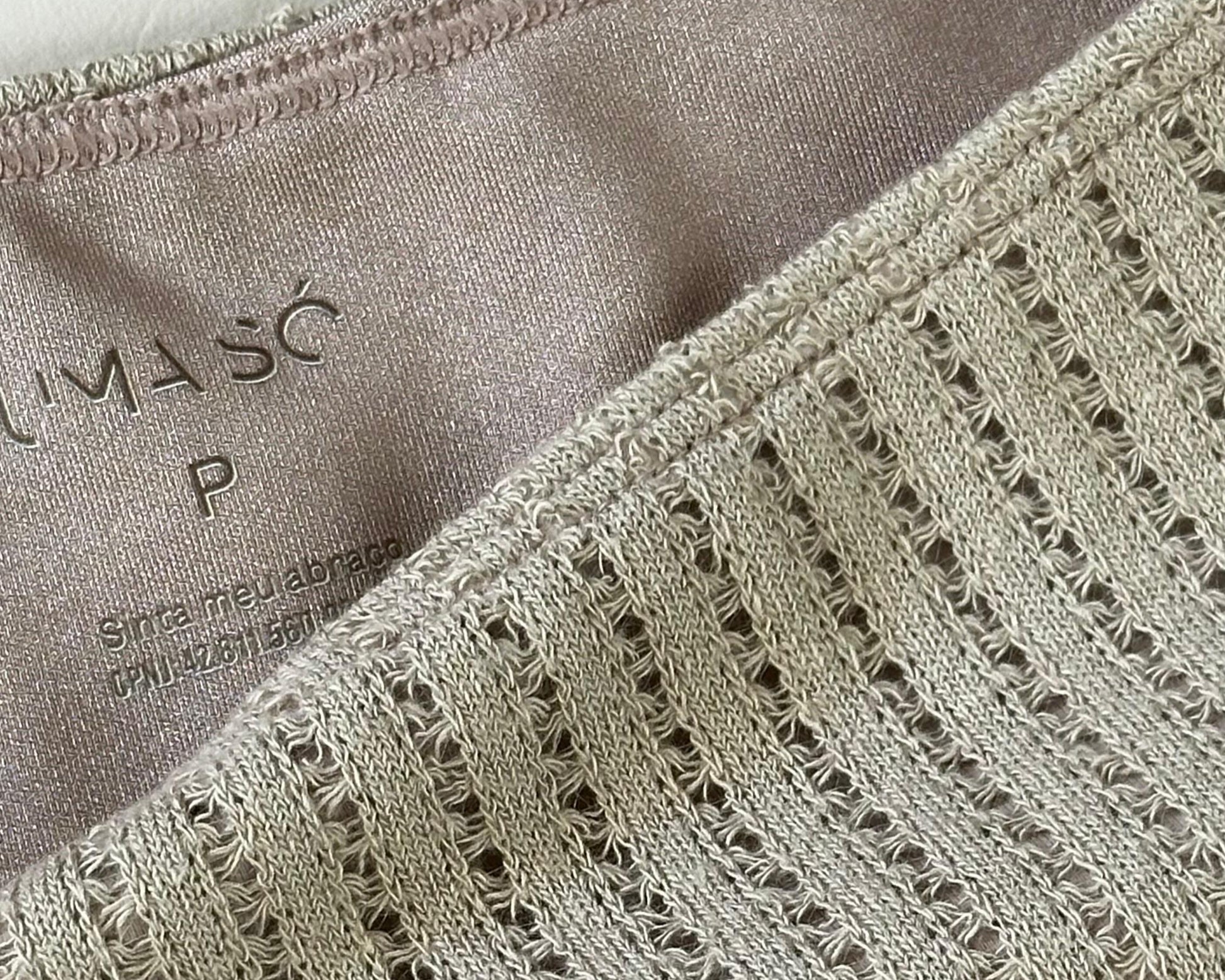 Seu design é especial o brilho discreto no interior contrasta com o toque sofisticado do tecido externo, que lembra um tricô leve e macio criando um efeito único, sensorial e visual.
