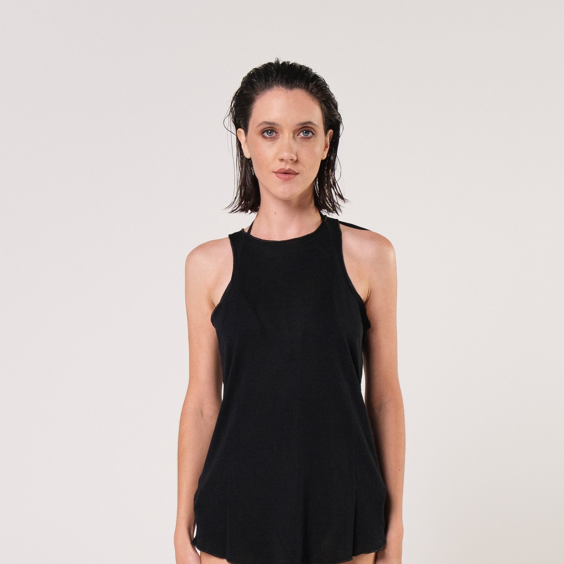 A Regata Delicadeza confeccionada em viscose com elastano proporciona conforto e toque agradável como um abraço. Sua modelagem ajustada ao corpo, refinado acabamento e costura delicada e flexível garantem um bom caimento. O decote nadador e o detalhe tapa bumbum proporcionam conforto e movimentos livres.
