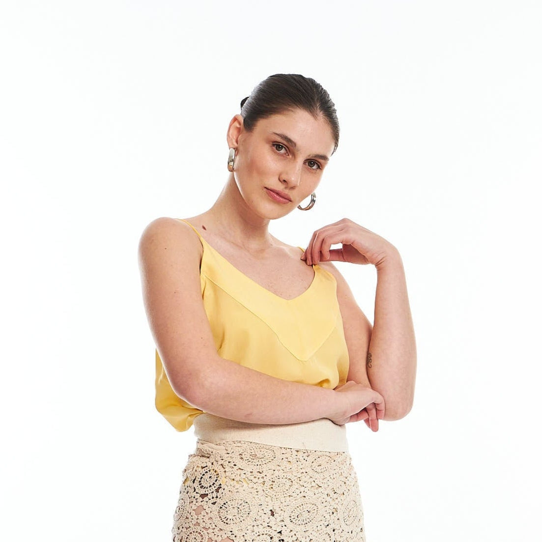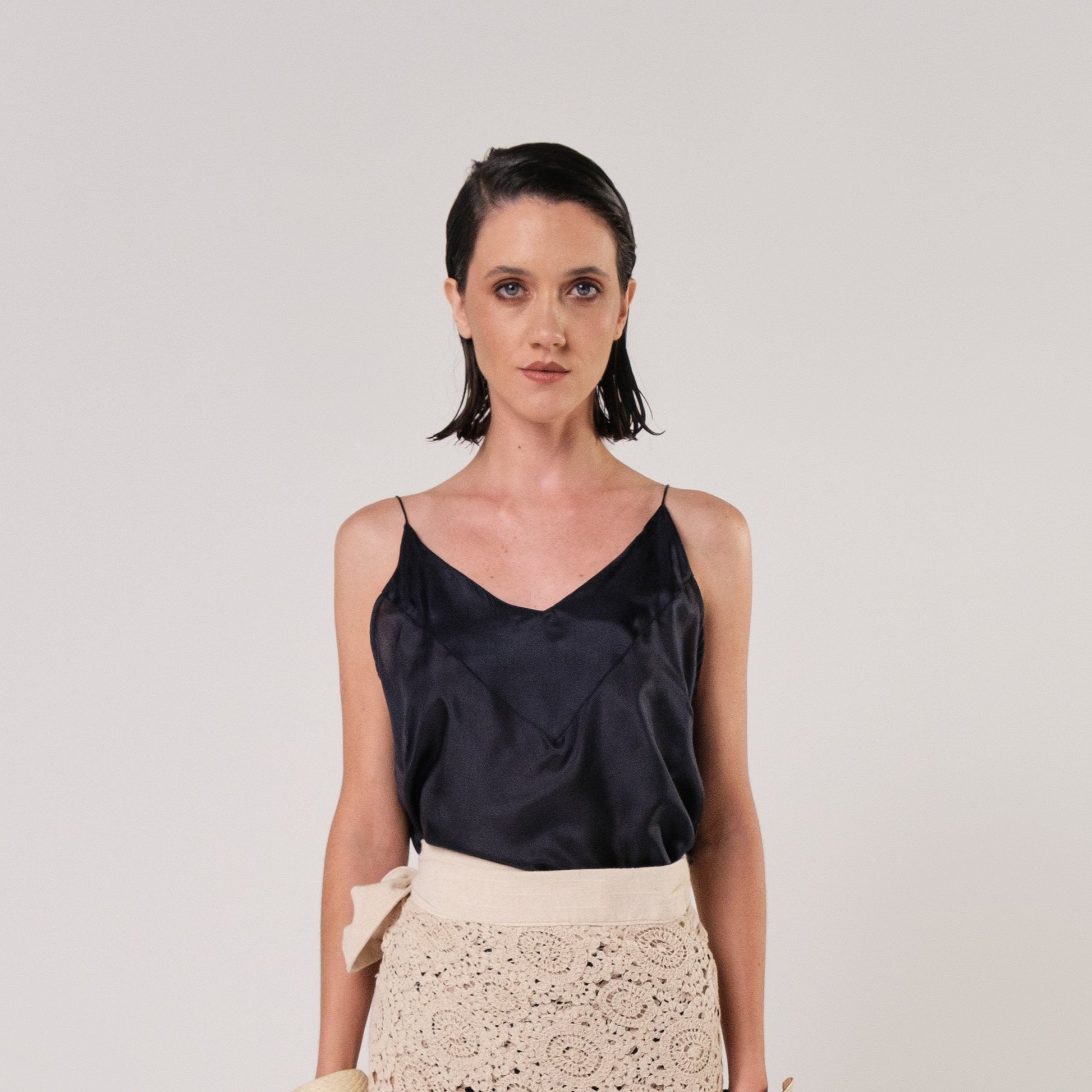 A Regata Sinceridade é confeccionada em 100% seda italiana. Esta regata é sinônimo de sofisticação e elegância. Suas alças finas e delicadas trazem um toque de feminilidade e leveza, tornando-a uma peça atemporal e versátil. O brilho sutil da seda realça a suavidade do tecido, proporcionando um caimento impecável e toque luxuoso. Ideal para composições tanto casuais quanto refinadas, a Regata Sinceridade é perfeita para quem valoriza o requinte dos detalhes.