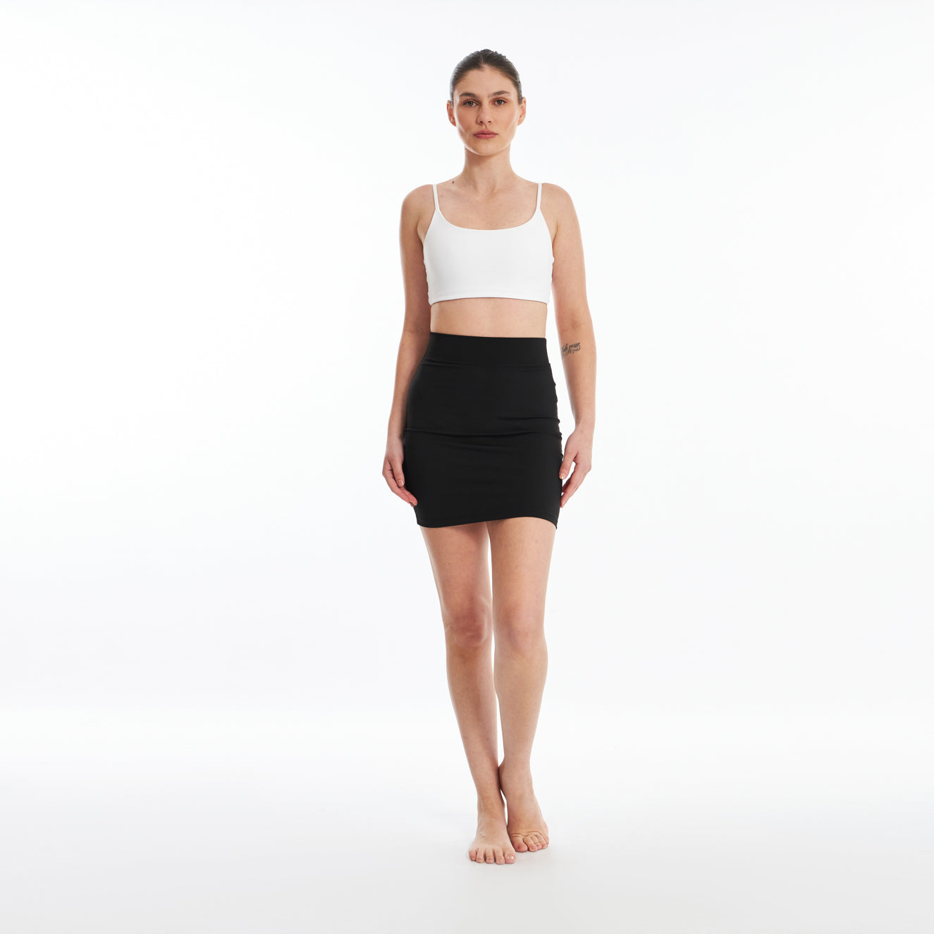 A Saia Beleza Livre é uma saia curta confeccionada em poliamida com tecnologia sustentável e elastano, proporcionando conforto e um toque agradável como um abraço. Sua modelagem ajustada ao corpo, o cós de 5 cm e o refinado acabamento são detalhes que garantem um bom caimento e a tornam uma excelente opção como uma "anágua" moderna.