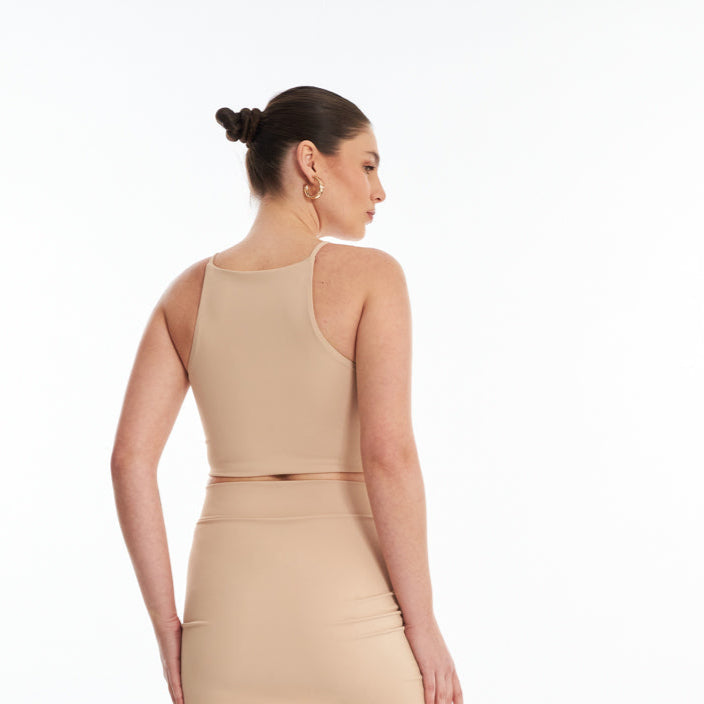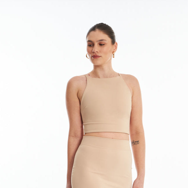 Confeccionado em poliamida com tecnologia sustentável e elastano, o Top Cropped Resiliência proporciona um toque agradável como um abraço. Sua modelagem ajustada ao corpo e a dupla camada garantem conforto quanto à transparência e segurança quanto à sustentação. O refinado acabamento com a costura embutida, as alças em rolotê, o decote reto levemente cavado são detalhes que agregam charme à peça.