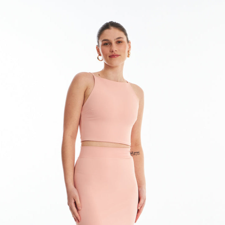 Confeccionado em poliamida com tecnologia sustentável e elastano, o Top Cropped Resiliência proporciona um toque agradável como um abraço. Sua modelagem ajustada ao corpo e a dupla camada garantem conforto quanto à transparência e segurança quanto à sustentação. O refinado acabamento com a costura embutida, as alças em rolotê, o decote reto levemente cavado são detalhes que agregam charme à peça.